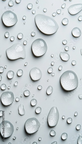 Macro shot of clear water droplets on a smooth surface, showcasing texture and reflections with minimalistic appeal.