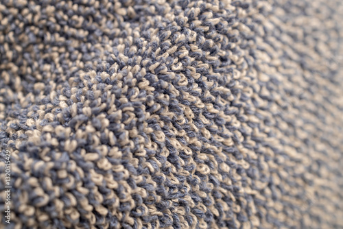 Macro texture background of a light blue and white cotton towel surface with looped yarn