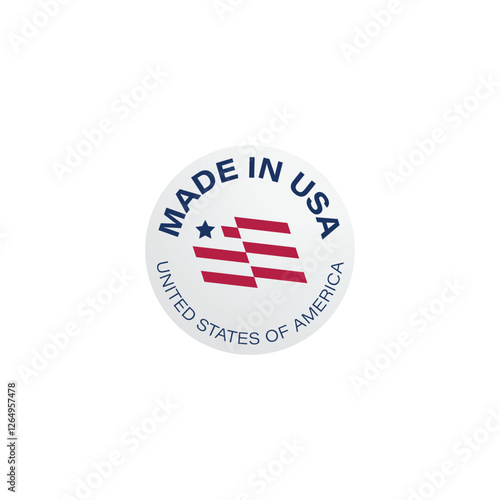 MADE IN USA Badge Design, Button, emblem, Sticker, award, medal, Icon, Logo, American Flag Badge, Flat Vector, Red-Blue and Black, Isolated Illustration. 4th july, flag day.