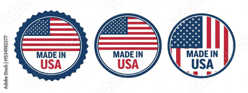 Made in USA Stamp Set American Product Label, Logo, Emblem, and Seal Vector badge