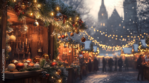 Magical Christmas Market Festive Lights Ornaments Snowfall