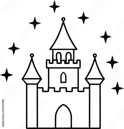 castle, vector, building, house, cartoon, illustration, architecture, tower, fortress, village, princess, design, fairy, town, fantasy, art, city, home, mediaeval, clip art, fairy tale, icon, flag, palace, old