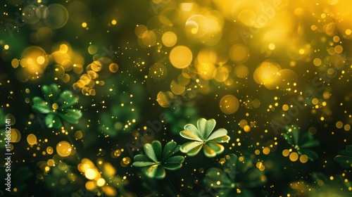 clover, leaf, green, gold, light, nature, plant, background, texture, floral, botanical, sparkle, shine, glistering, magic, mystical, festive, holiday, celebration, irish, luck, fortune, charme, beauty, bright, gold, yellow, dark, abstract, design, illustration, artistic, photo, image, picture, visual, graphic, element, pattern