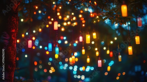 forest, magical, night, colourful, light, hanging, tree, bokeh, effect, enchanting, atmosphere, exploration, nature, outdoors, photo, no people, aesthetic, dreamy, aethereal, glowing, whimsical, adventure, wonder, serene, harmony, mystical, aglow, fantasy, peaceful, escape, memory, seasonal, holiday, lifestyle, cinematic, vibrant