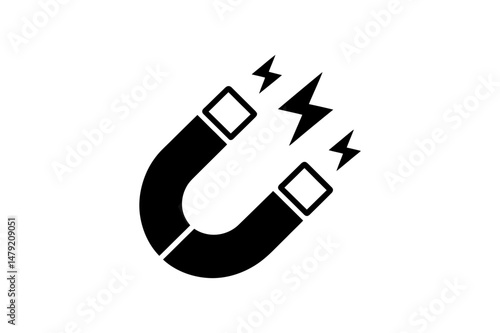 magnet, horseshoe, attraction, physics, force, magnetic, field, science, power, symbol, shape, black, white, icon, vector, illustration, energy, electromagnetism, metal, hardware, tool, technology, design, graphic, element, isolated, signs, electricity, charge, bolt