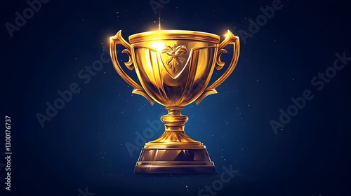 Magnificent Golden Trophy on Dark Blue Background Symbolizing Victory and Accomplishment