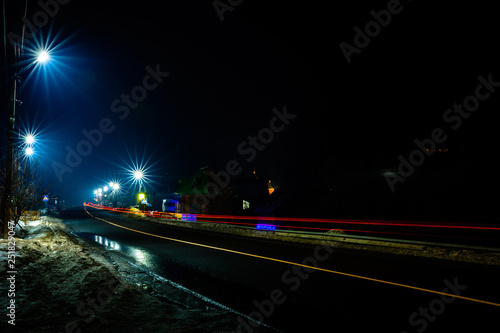 Magnificent shake the light of car lights in the evening on the highway with the stars of streetlights