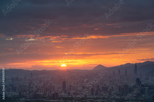 mountain, taipei, sun, red, yellow, sky, city landscape, dawn, morning, summer, nature, horizon, travel, tour tourism, asia, photo, environment, majestic, golden hour, no people, sunlight, city, capital city, architecture, beauty, famous place, skyscraper, modern, aerial view, idylli, aethereal, calmness, many-coloured, dramatic sky, awe, hill, orange color, outline, journey, outdoors