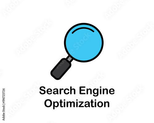 magnifier icon search engine optimization cartoon design illustration.cartoon design style, designed for web and app