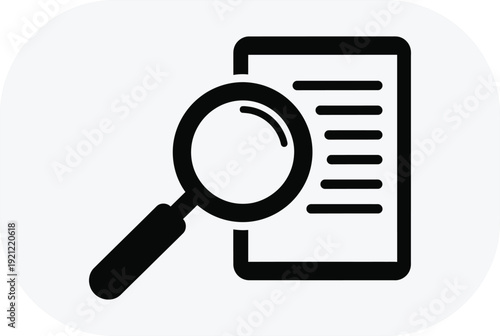 magnifying glass, document, icon, search, investigate, examine, canvasses, research, study, look, see, find, discover, explore, inspect, scan, read, check, review, investigation, discovery, researching, exam, analysis, searching, looking, viewing, graphic, image, symbol, signs, illustration, picture, visual, representation, logotype, pictogram, line, text, magnify, zoom, detail