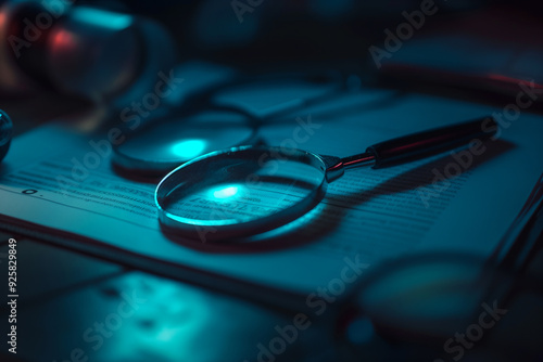 Magnifying Glass on Paper with Blue Light