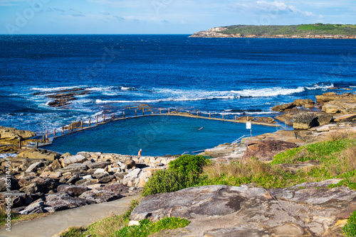 mahon, pool, north, beach, blue, surf, wave, ocean, plant, sky, rock, sea, headland, swimmer, reserve