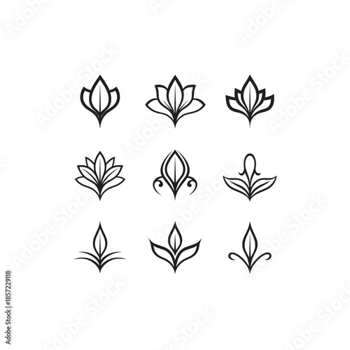 flower, floral, decoration, nature, icon, black, signs, laurel, butterfly, silhouette, illustration, vector