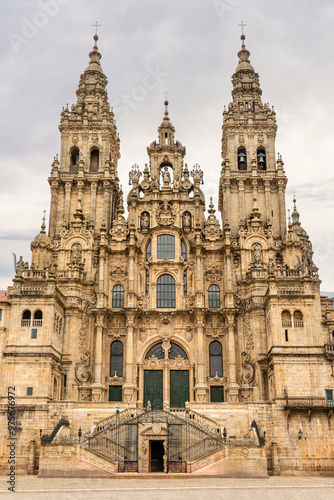 Main facade of the cathedral of Santiago de Compostela where the apostle Santiago is buried, destination of pilgrims, Galicia
