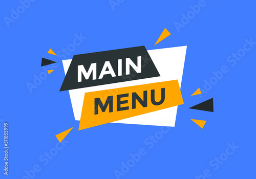 Main Menu button. Main Menu text web banner template. Sign icon banner