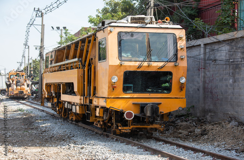 Maintenance railway on working a track tamping machine works on the tracks