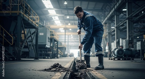 maintenance, men at work, debris, trench, drain, industrial, factory, remove, clean, inspection, block, drainage, safety, routine, facility, waste, flow, drainpipe, dirt, buildup, jam, backup, trap, utility, water, system, liquid, grating, infrastructure, management, service, repair, cleaning, equipment, removal, flush, storm, runoff, blockage, spill, restore, structure, hazard, grime