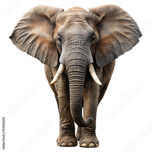 elephant, african elephant, mammal, wildlife, animal, wild animal, nature, zoo, safari, tusk, trunk, ear, large, powerful, strong, majestic, wild, fauna, creature, beast, digital artwork, illustration, graphic, image, cut-out, hi-res, detailed, realistic, front view, standing, conservation, endangered species, africa, savanna, jungle, animal portrait, big game