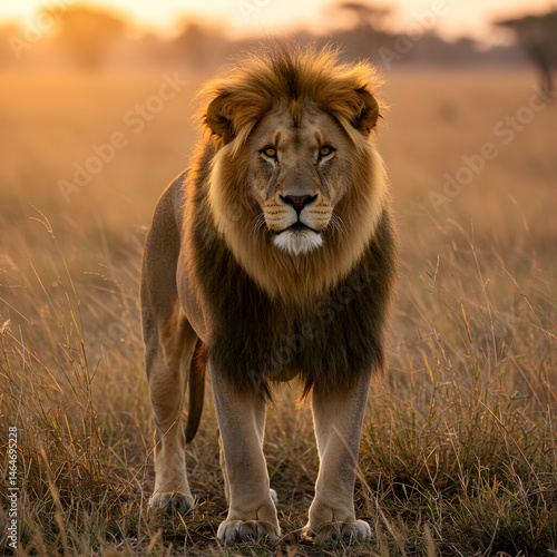 lion, wildlife, wild animal, nature, savanna, sunset, sunrise, golden hour, mammal, predator, king of the jungle, africa, safari, big cat, mane, powerful, majestic, animal kingdom, golden light, wild, serengeti, big five, cat, animal portrait, fierce, proud, natural light, nature scene, wildcat