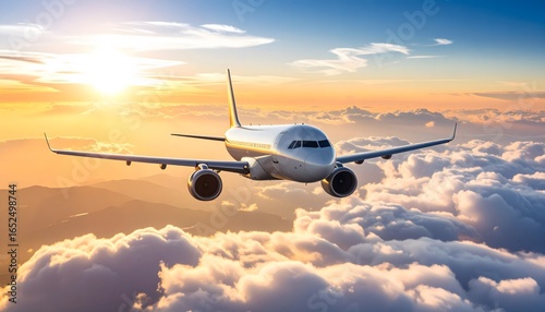 Majestic Airplane Soaring Above Clouds at Sunrise