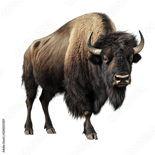Majestic american bison on transparent background showcasing powerful horns and fur