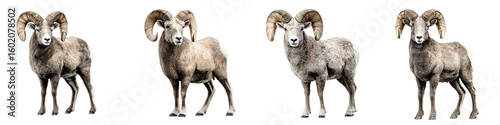 Majestic Bighorn Sheep - Wild Animal Portraits on White Background