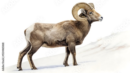 Majestic bighorn sheep standing proudly on a snowy slope in a winter landscape