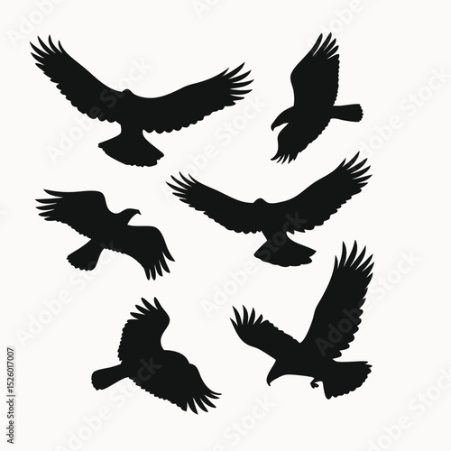 Majestic Birds in Flight A Collection of Black and White Eagle Silhouettes