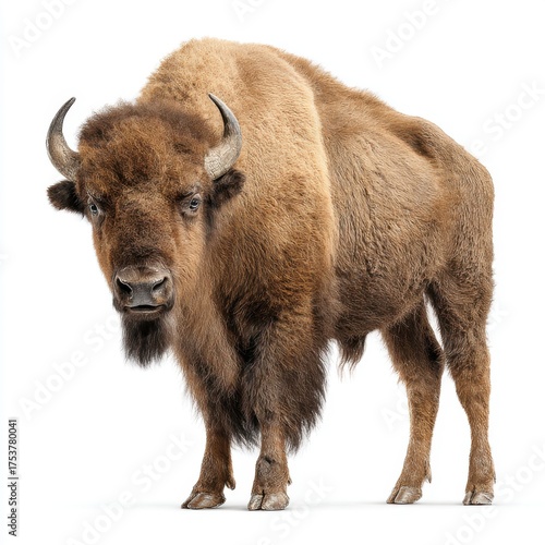 Majestic Bison Standing Proudly in Front of a White Background.
