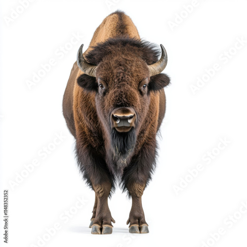 bison, animal, wildlife, majestic, standing, brown, fur, horn, isolated, large, powerful, nature, mammal, front view, strong, wild, herbivore, north america, portrait, fierce, closeup