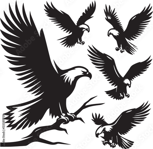 Majestic Black and White Eagle Vector Illustration – Fierce Falcon Silhouette Logo