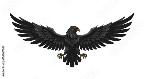 Majestic Black Eagle with Spread Wings Illustration on White Background