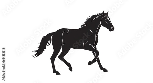 Majestic Black Horse Galloping Gracefully Across a White Background