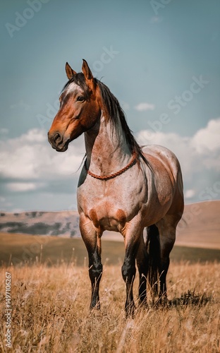 horse, brown horse, countryside, animal, nature, wildlife, equestrian, landscape, sunny, majestic, blue skies, rural, scenery, field, mountain, natural, beautiful, strong, freedom, wild, elegance, light, cloud, pasture, serene, farm, country, sunshine, vibrant, grace, dynamic, skyline, tranquil, open space, powerful, mane, fast horse, mammal, portrait, brown, head