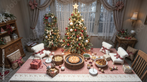Majestic Christmas Trees Adorn a Festive Winter Wonderland with Fireworks Display