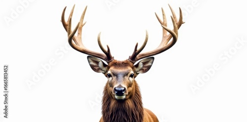 Majestic deer head, antlers spread wide, pristine white background , trophy, buck, antler spread