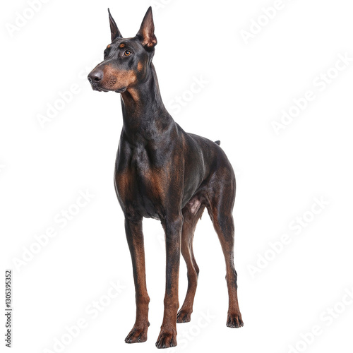 doberman, dog, canino, isolated, transparent, purebred, striking, white background, pedigree, muscular, guard dog, beautiful, pet, elegant, portrait, studio shot, vigilant, focused, alert, animal, mammal, companion, intelligent, obedient