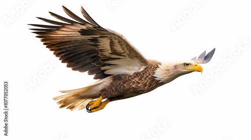 Majestic Eagle in Flight with Outstretched Wings and Sharp Talons Against a White Background, Symbolizing Freedom and Nature's Beauty