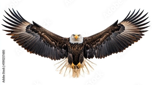 Majestic Eagle Soaring in Flight Against a Crisp White Background for Wildlife Education