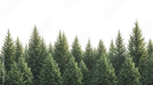 Majestic evergreen forest landscape with tall pine trees art row sky woods image light white fresh