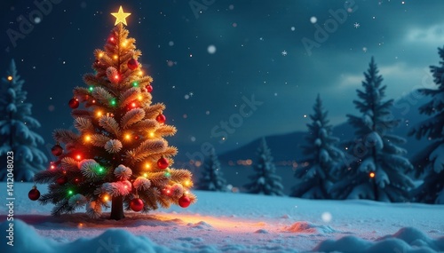 christmas tree, holiday decorations, christmas, tree, winter, snow, holiday, decoration, illustration, star, christmas, celebration, vector, new year, fir, season, snowflake, night, new, december, year, ornament, greeting, landscape, nature, card