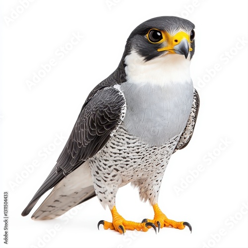 Majestic gray falcon with a gray chest displayed on a pristine white background highlighting its distinctive coloration