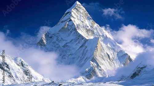 Majestic Himalayan Peak Snow-Capped Mountain Landscape Under a Vivid Blue Sky