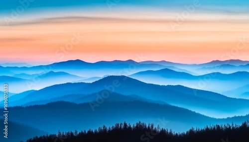 mountain, hill, nature, landscape, sunset, blue, orange, dusk, skyline, wilderness, horizon, calm, vista, elevation, serene, tranquil, perspective, silhouette, layered, sky, cloudscape, scene, scenic, vista, background, tour tourism, site, area, region, tree, silhouette, peak