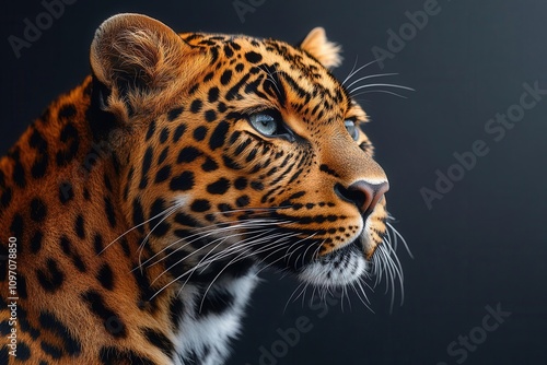 majestic leopard poised against a stark black backdrop, highlighting its striking spots and piercing gaze, embodying strength and wild beauty