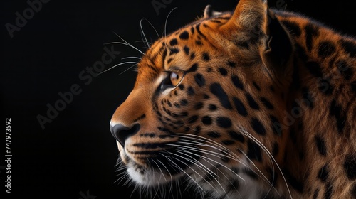 Majestic Leopard Portrait: Intense Gaze of a Wild Predator, Stunning Close-up with Vivid Detail and Contrast Against a Dark Background.