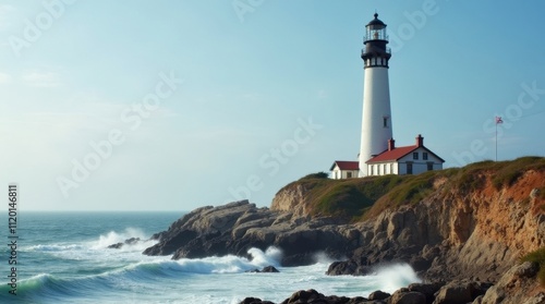 Majestic Lighthouse on Rocky Cliff with Crashing Waves