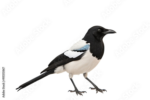 Majestic magpie PNG image with detailed feathers and vibrant black-and-white plumage isolated on transparent background ideal for digital design and nature illustrations
