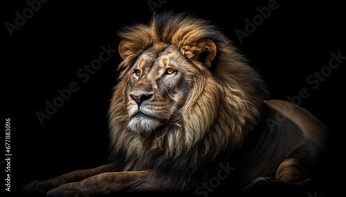 Majestic male lion staring with aggression, strength in his eyes generated by AI