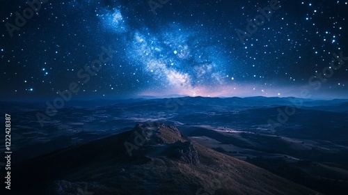 Majestic Milky Way galaxy over a hilltop landscape at night.
